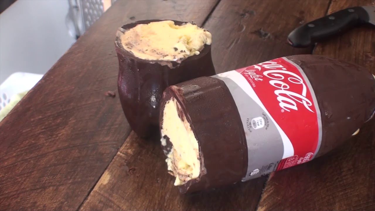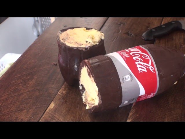 Aprende con este video a como hacer esta tarta helada con forma de cocacola, usa la botella como molde.