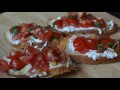 3.-Cubre la tostada primero con la mezcla de ricotta y luego con la mezcla de tomate.