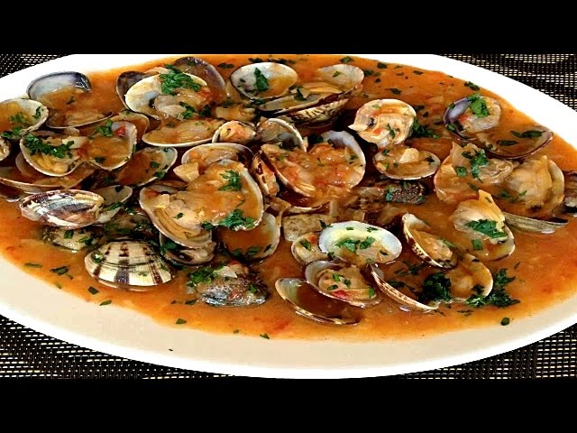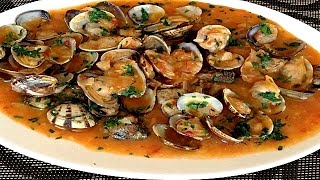 caliente, tradicionalmente en cazuela de barro. Se deben lavar las almejas varias veces antes de elaborar el plato, para que suelten la arenilla que puedan tener en su interior. Un plato que te hará quedar como el rey o reina de las recetas cuando se lo prepares a tus familiares o amigos. *** SUSCRÍBETE http://goo.gl/jz4jAo *** No te olvides comentar y dedito arriba si te gustó *** Gracias por ver mis vídeos ***