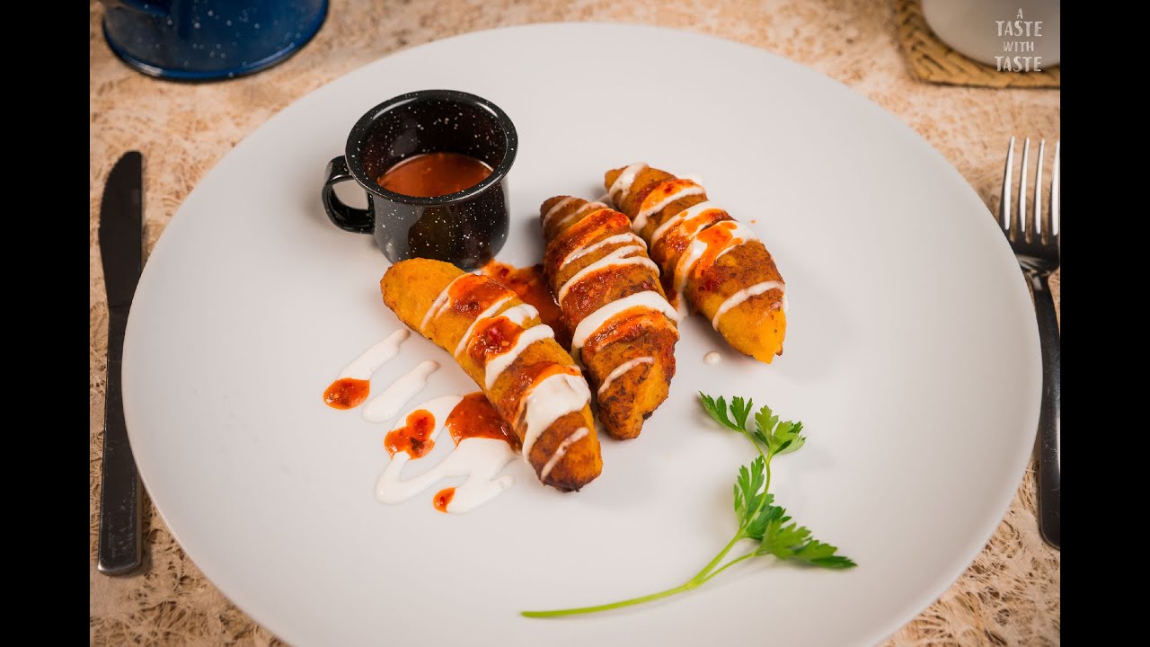 Bigotes de plátano macho rellenos de frijol y queso ─ A taste with taste - La cocina de Rosina