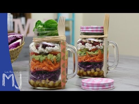 Cómo hacer una original ensalada en tarro para llevar. Podéis personalizarla a vuestro gusto, ideal para ir de picnic, para la oficina o para sorprender a nuestros invitados. Receta paso a paso.