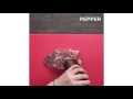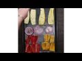 1. Cut zucchini and summer squash in half lengthwise. Remove the insides of the bell peppers and cut into large chunks. Remove the top and bottom from the red onion and slice horizontally into three pieces.