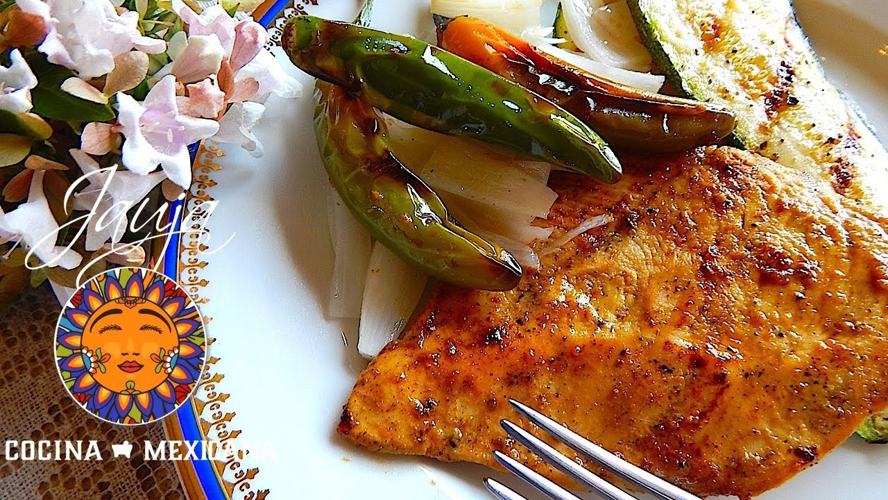 Pechugas de Pollo al Ajo y Limón a la Plancha. Pechugas de Pollo al Ajo y Limón jugosas y suavecitas, cocinadas a la perfección a la plancha, y acompañadas de chiles toreados y calabacitas. Ingredientes, técnicas paso-a-paso y tips para cocinar Pechugas de Pollo sazonadas con ajo, limón y especias. Muy fáciles de preparar, saludables y deliciosas. Una receta favorita de Jauja Cocina Mexicana en comidas y cenas con la familia. Buen provecho.