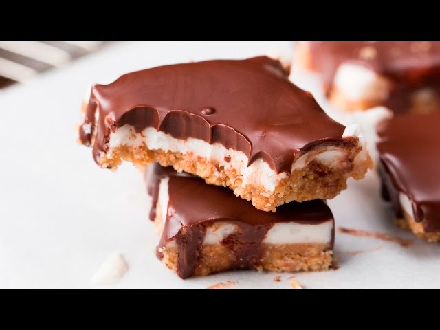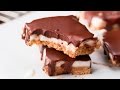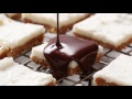 9. Place squares on a metal cooling rack and top with melted chocolate.