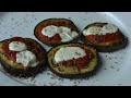 4.-Coloca las berenjenas en una bandeja de horno, cubre con un poco de salsa de tomate, mozzarella, oregano, sal, pimienta y cocina por unos 15 minutos.
