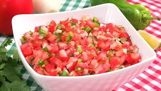 Aprende con este vídeo cómo hacer Pico de Gallo. En una ensalada mexicana también conocida como salsa mexicana, salsa bandera o huevona y se usa para acompañas algunos platos mexicanos además de representar la bandera de México por el color del tomate, cebolla y pimiento o chile verde.