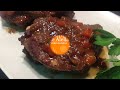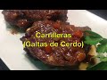 Carrilleras (Galtas) de Cerdo con salsa Pedro Ximenez. Las Carrilleras están en la parte de la quijada y es una carne con hueso que una vez cocinada es muy sabrosa y tierna.