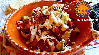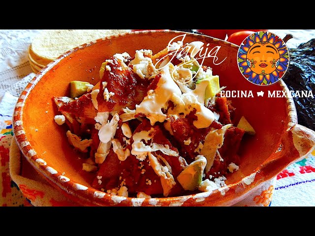 Chilaquiles. Receta de Chilaquiles con pollo de Jauja Cocina Mexicana. Chilaquiles con pollo en salsa de jitomate y chile ancho servidas con crema, queso fresco, cebolla y aguacate. Receta completa paso-a-paso, tips e ingredientes para preparar Chilaquiles Mexicanos con pollo. Muy fáciles de hacer, y buenísimos para desayunos y almuerzos con la familia. Buen provecho.