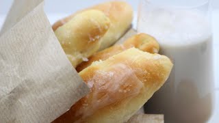 CĂłmo hacer fartons caseros sin lactosa con glaseado de horchata. Bollitos alargados esponjosos y tiernos para mojar en horchata bien frĂa y sin lactosa. Receta de fartons valencianos con glaseado de horchata.