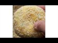 4.(3)を直径5cmほどの平い円状に成形し、小麦粉、溶き卵、パン粉を順にくぐらせる。