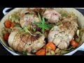 CĂłmo hacer muslos de pavo rellenos de foie, bacon, manzana, ciruelas y piĂąones. Receta para Navidad paso a paso. Muslos de pavo rellenos con salsa de zanahorias y cebollas. Plato navideĂąo con muslos de pavo o de pollo rellenos.