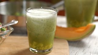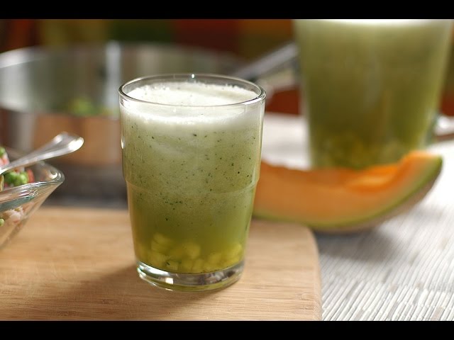 Receta de agua fresca de melón con pepino fácil y rápida.