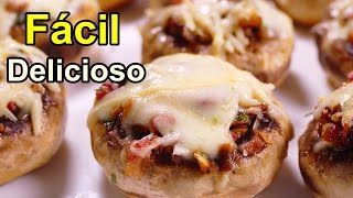 Recetas de cocina faciles y economicas de pizza. Cenas y Comidas rapidas y ricas: Como hacer Champiñones de pizza. Algo delicioso de hacer. Es una alternativa a las pizzas de toda la vida. Una sencilla y deliciosa comida rapida y facil de hacer en casa que seguro triunfa en fiestas y para niños.