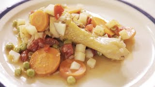 Receta de estofado de pollo con verduras fácil de cocinar.