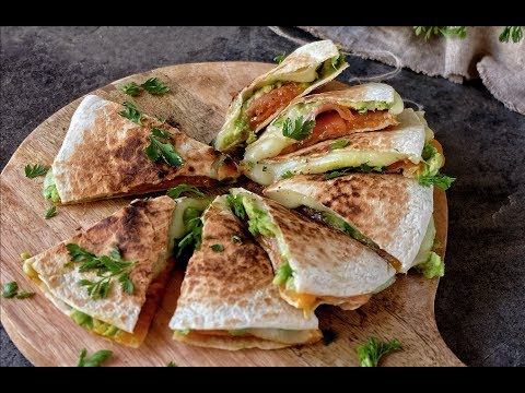 Aprende con este vídeo cómo preparar de forma sencilla y paso a paso estas deliciosas quesadillas con dos tipos de queso (la mozarella y el cheddar), aguacate y salmón ahumado.