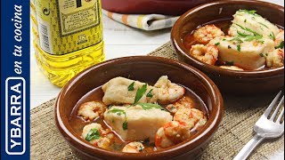 Cazuelitas de merluza y gambones ─ Recetas de Cocina Ybarra