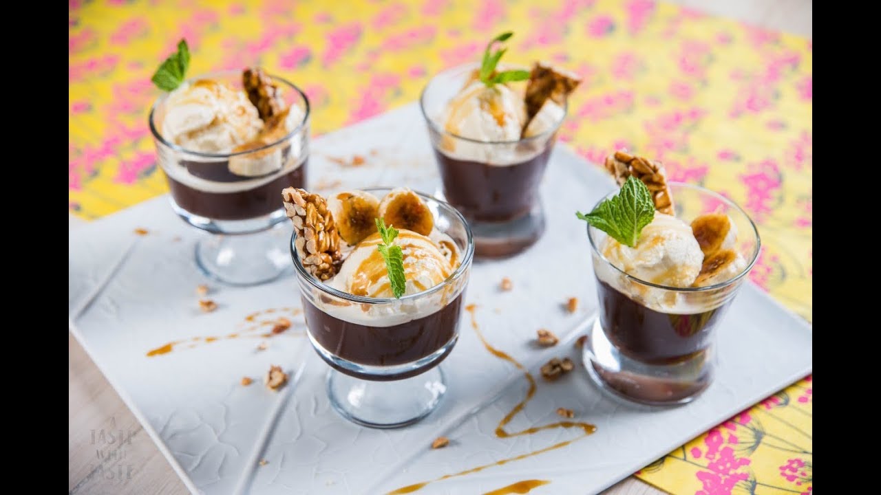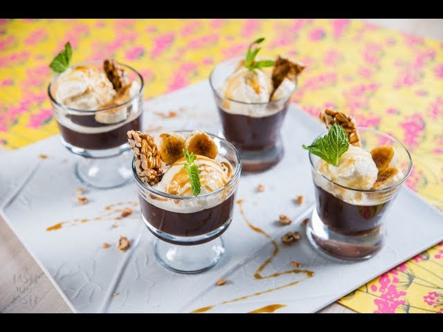 Mousse cremoso de chocolate, plátano y caramelo. Delicioso postre sencillo de preparar sin horno. ─ A taste with taste - La cocina de Rosina