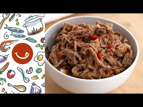 Receta de carne mechada, carne desmechada o ropa vieja. La carne mechada se logra cuando se cocina con tiempo, haciendo que se deshilache sola y bien de salsa. Perfecta como guarnición, relleno de empanadas, patatas, lasañas o arepas. Una receta tradicional de las abuelas ya en vídeo. Visita esta receta de cocina en mi blog: http://www.recetasderechupete.com/