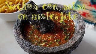 En las taquerías, además de platos típicos como los burritos, quesadillas, enchiladas, fajitas, tamales o chilaquiles, suelen poner nachos con salsa, aquí los preparo con el molcajete.