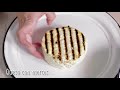 Cocina a temperatura o fuego medio alto, esto puede ser ya sea en el asador o en una parrilla interior con un sartén estilo grill. Engrasa el papel, coloca el queso panela y cocina en la parrilla por 4 a 6 minutos o hasta que se haya marcado el queso. Cubre la otra parte del queso con papel para hornear engrasado, voltea con cuidado y cocina otros 4 a 6 minutos más, hasta que se haya marcado de ese lado y el queso esté tibio.