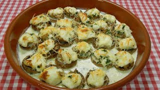 Esta receta es ideal para que la utilices como aperitivo o guarnición, se trata de unos champiñones rellenos y acompañados de salsa ajoaceite y nata, una deliciosa y muy fácil forma de preparar los champiñones.