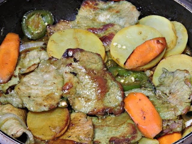Lomo con rajas en salsa verde