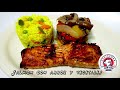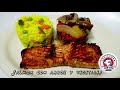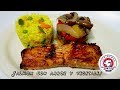 como preparar un rico salmon frito con arroz amarillo y vegetales