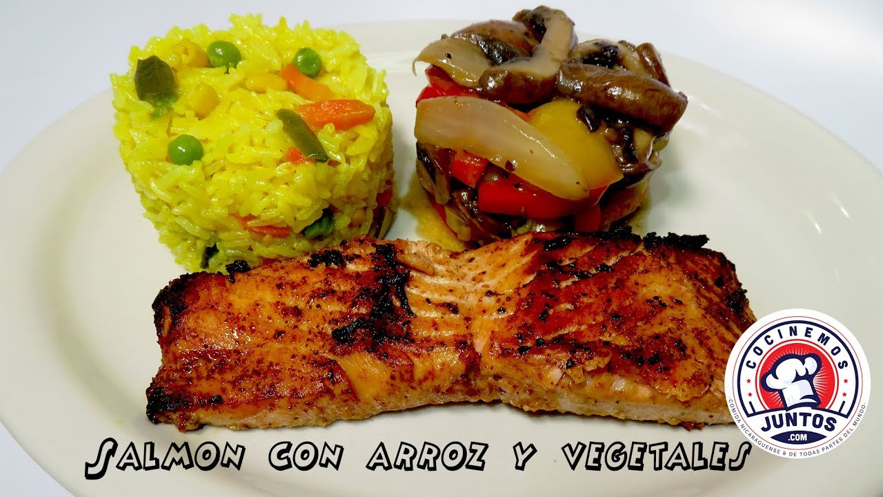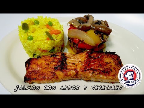 Salmon con arroz amarillo y vegetales ─ Cocinemosjuntos.com