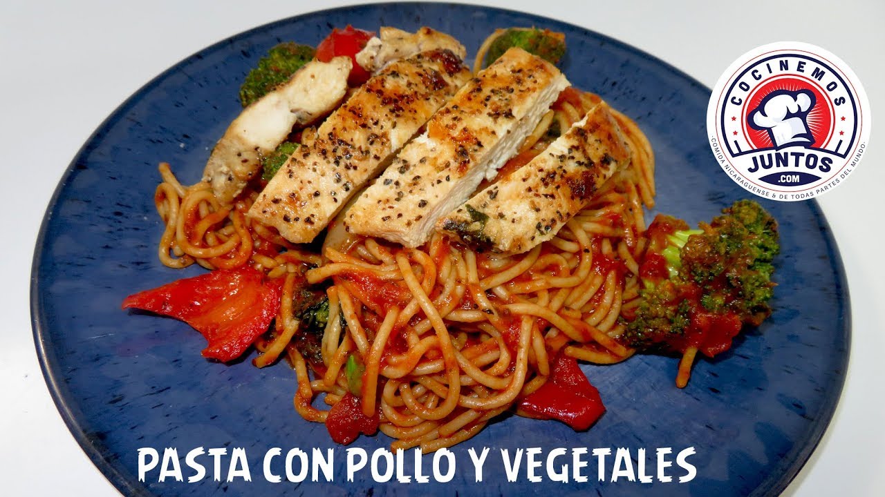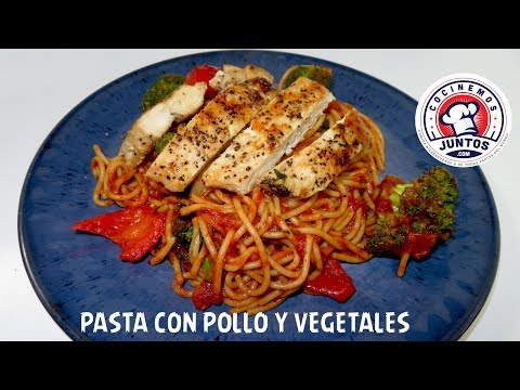 Como hacer una facil y deliciosa pasta con salsa roja, con pollo y vegetales en cocinemos juntos