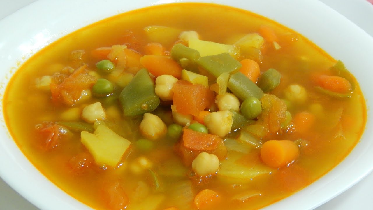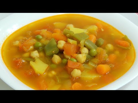 Receta fácil y rápida de sopa de verduras con garbanzos ─ Las recetas tradicionales de cocina
