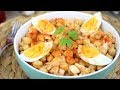 CĂłmo hacer una deliciosa y saludable ensalada de garbanzos con bacalao, baja en calorĂas y muy nutritiva.