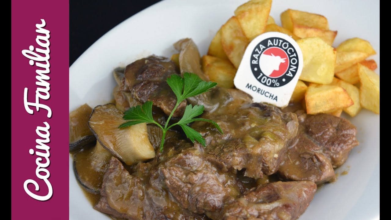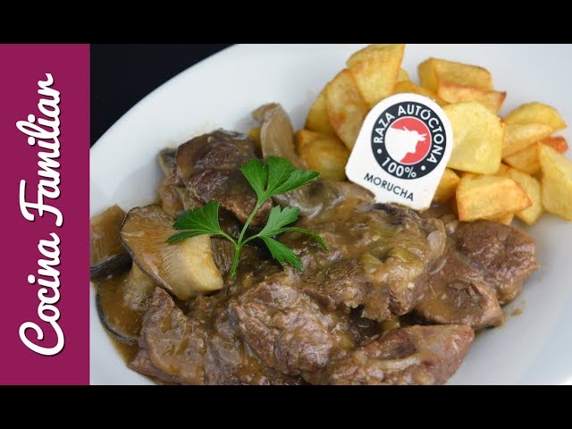 Receta para hacer un estofado de vaca morucha con setas de cultivo de La Rioja. Una receta fácil y sabrosa con una carne espectacular.