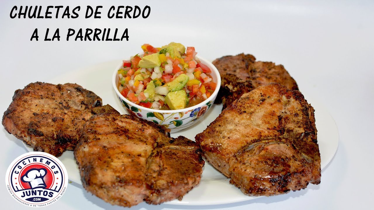 Chuletas de puerco a la parrilla con pico de gallo ─ Cocinemosjuntos.com