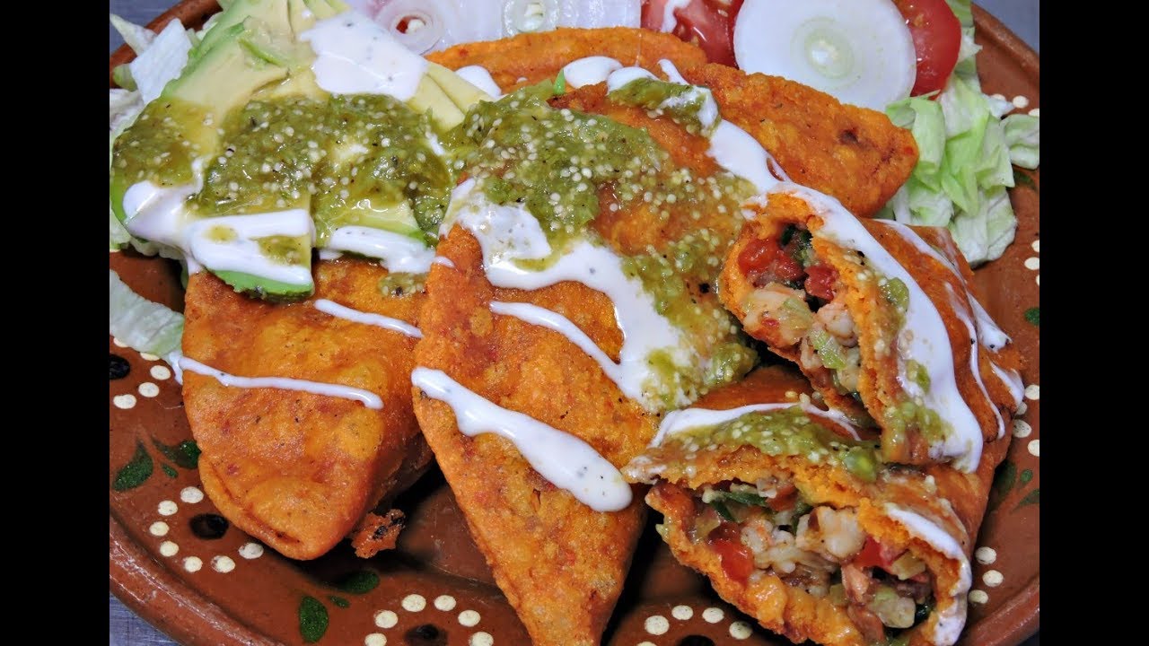 Te comparto mi receta de empanadas fritas de camarones guisados, hechas de masa de maíz enchilada, que es muy rica y fácil de lograr.