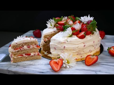 Pastel de Fresas Frescas - (Pan y Betún) - Mi Cocina Rápida ─ Mi Cocina Rápida - Karen