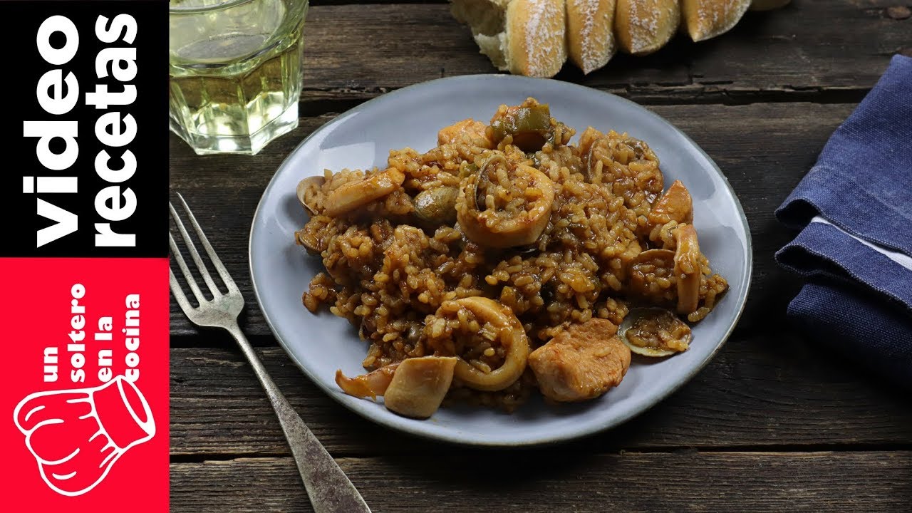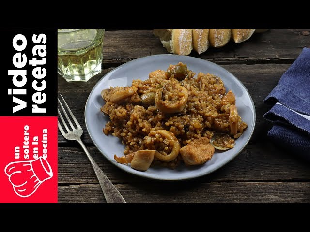Delicioso arroz con pollo y sepia, fácil y rápido de preparar.