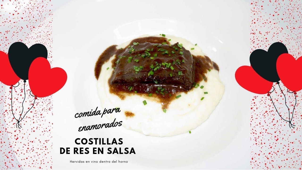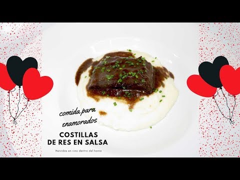 Costillas de res sin huesos, hervidas lentamente dentro de horno en vivo por mucho tiempo para que queden suavecitas y deliciosas. Esta comida es ideal para el dia e san valentin o para una cena o amuerzo especial. Las costillas toman tres dias en preparar, pero vale la pena ya que agarrran sabores sensacionales y se comen con un pure de papas que puedes ver el video aqui.