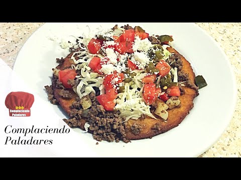tostadas rellenas y bien crujientas estas tosatadas con un relleno de frijoles y acompanada de carne molida con papas es una ricura de antojito mexicana. Estas tostadas son deliciosas porque son unicas animate y preparalas.