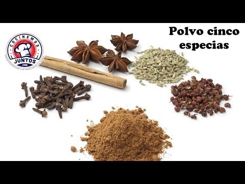 Este polvo cinco especias es ideal para comidas chinas. LLeva canela, clavo de olor, pimienta china, estrella anis y semillas de hinojo. Se ponen en una cazuela a tostar y despues de muelen en un instrumento para moler cafe. Se guarda dentro de la nevera y dura seis meses.