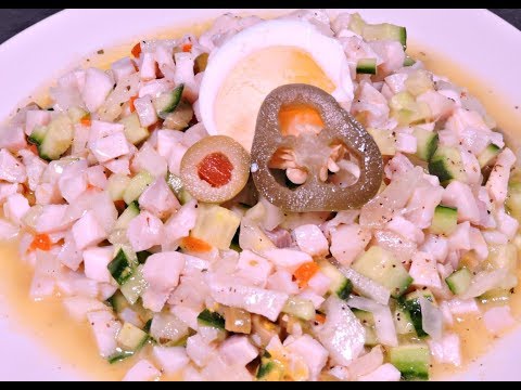 Hoy tenemos Coctel de pescado Careyes, la preparación es lo que conocemos como ceviche: un pescado marinado en jugo de limones. Lo que va haciendo diferente cada versión de ceviche es lo que se le agrega además, después de marinarlos o en la marinada misma.