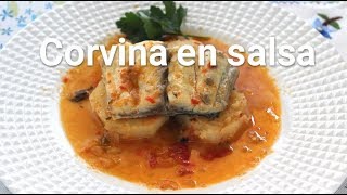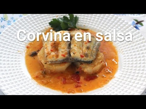 Cómo hacer corvina en salsa. Receta de un delicioso guiso de pescado, con patatas y una salsa con base de verduras. Paso a paso con fotos, vídeo y consejos. Puedes encontrar más información en http://www.recetasderechupete.com/