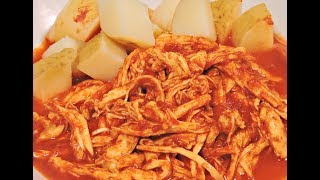 Si les gustan las recetas sencillas y ricas, este pollo deshebrado con salsa de chiles guajillos les va a encantar! además la puedes servir en palto con guarniciones al gusto, en tacos, crepas, gorditas, lonches y empanaditas... es muy versátil!