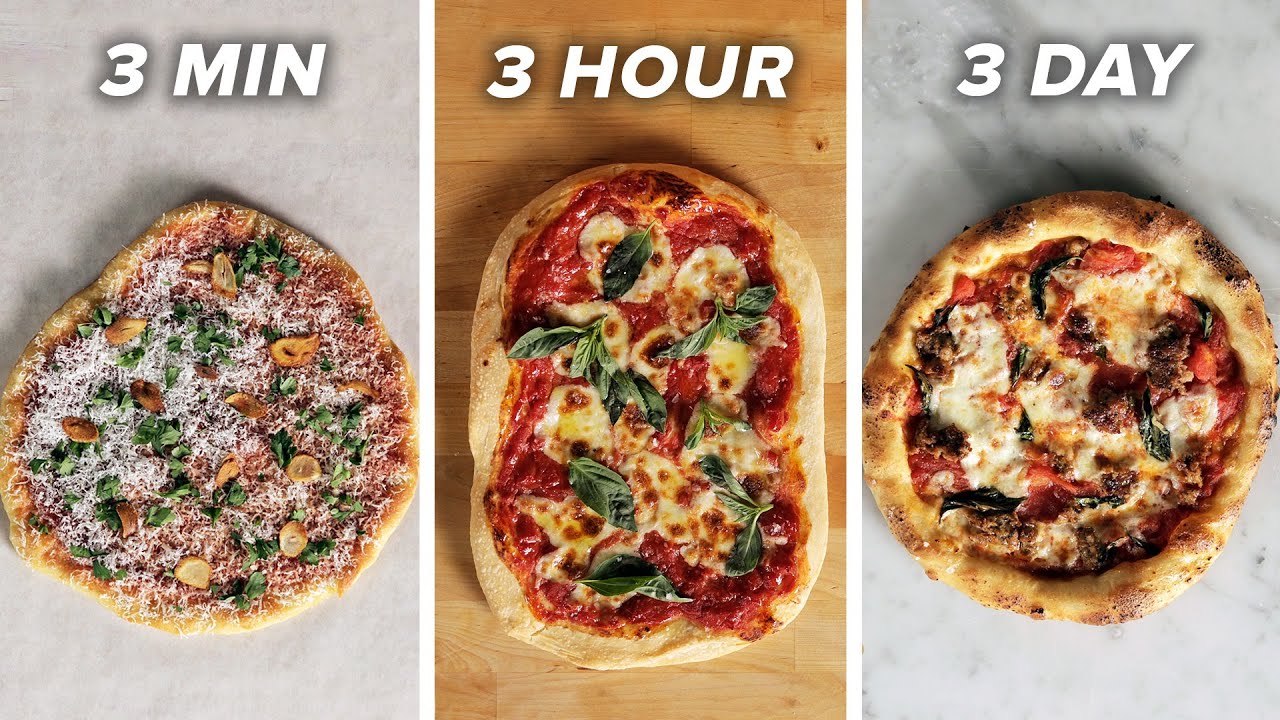 3-Minute Vs. 3-Hour Vs. 3-Day Pizza • Tasty ─ Tasty