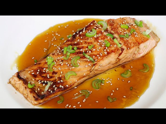 Salmón Con Salsa De Soja Y Miel. Un Plato De Pescado Estilo Oriental Con Un Marinado Delicioso. ─ Cocinero Diario